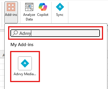 Once installed, the Advvy Add-in tab will appear in Excel’s ribbon.