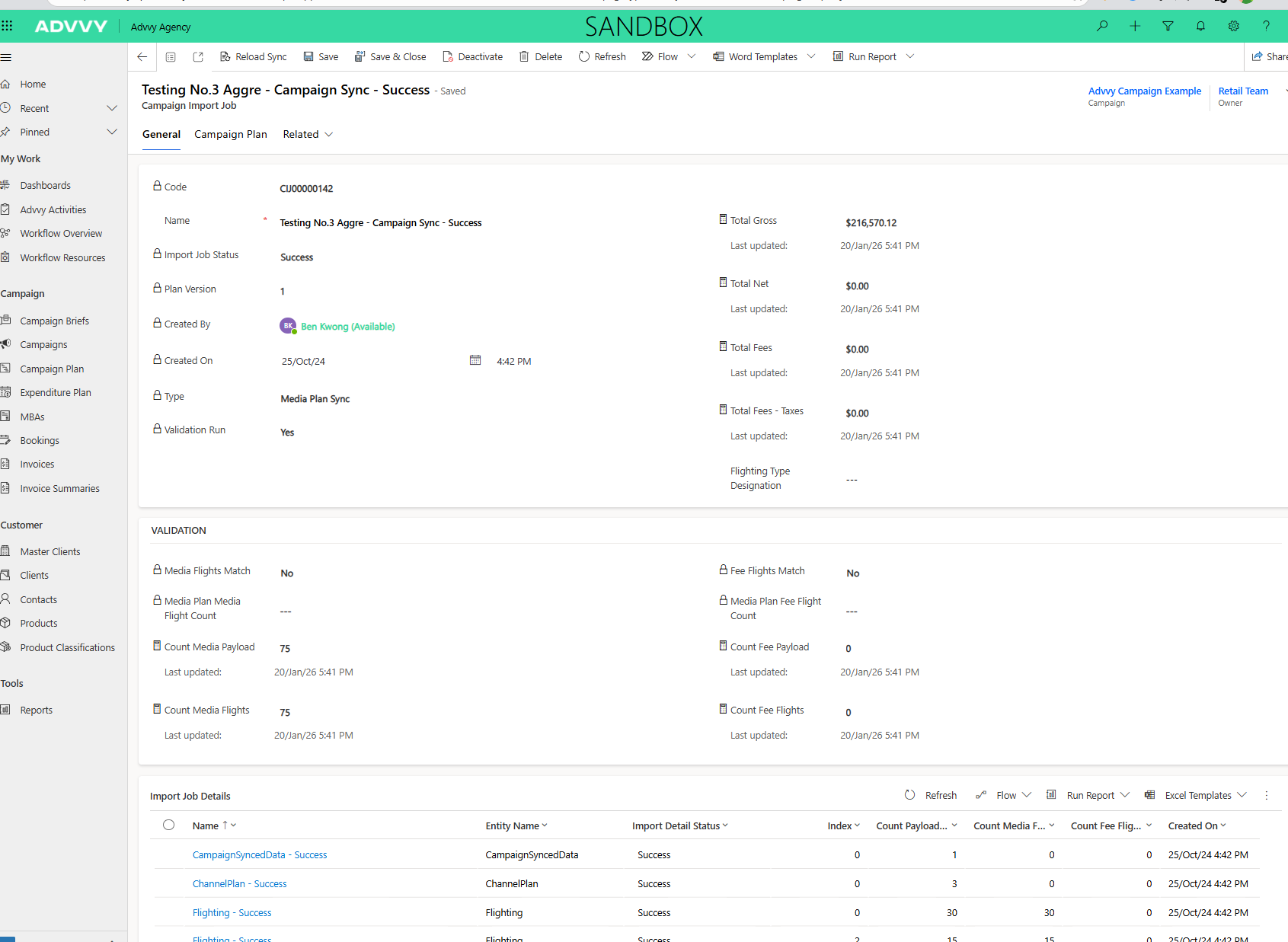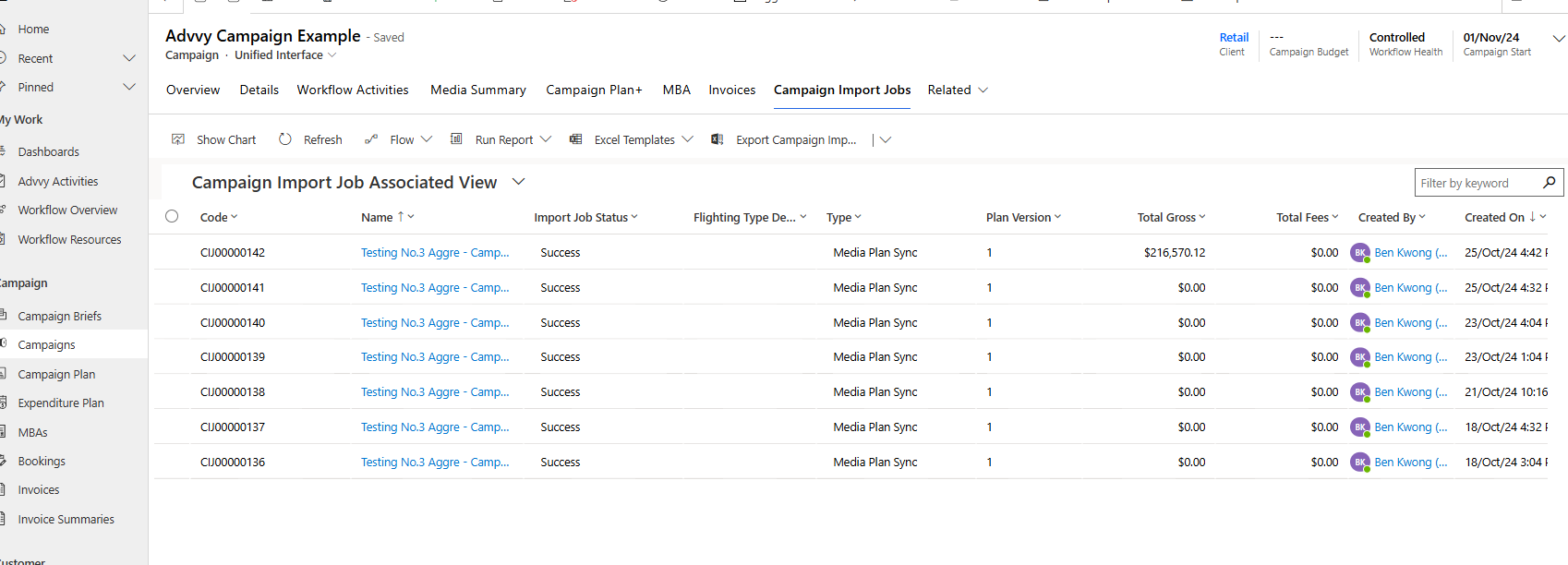 Every media plan sync creates a Campaign Import Job record in Advvy.
