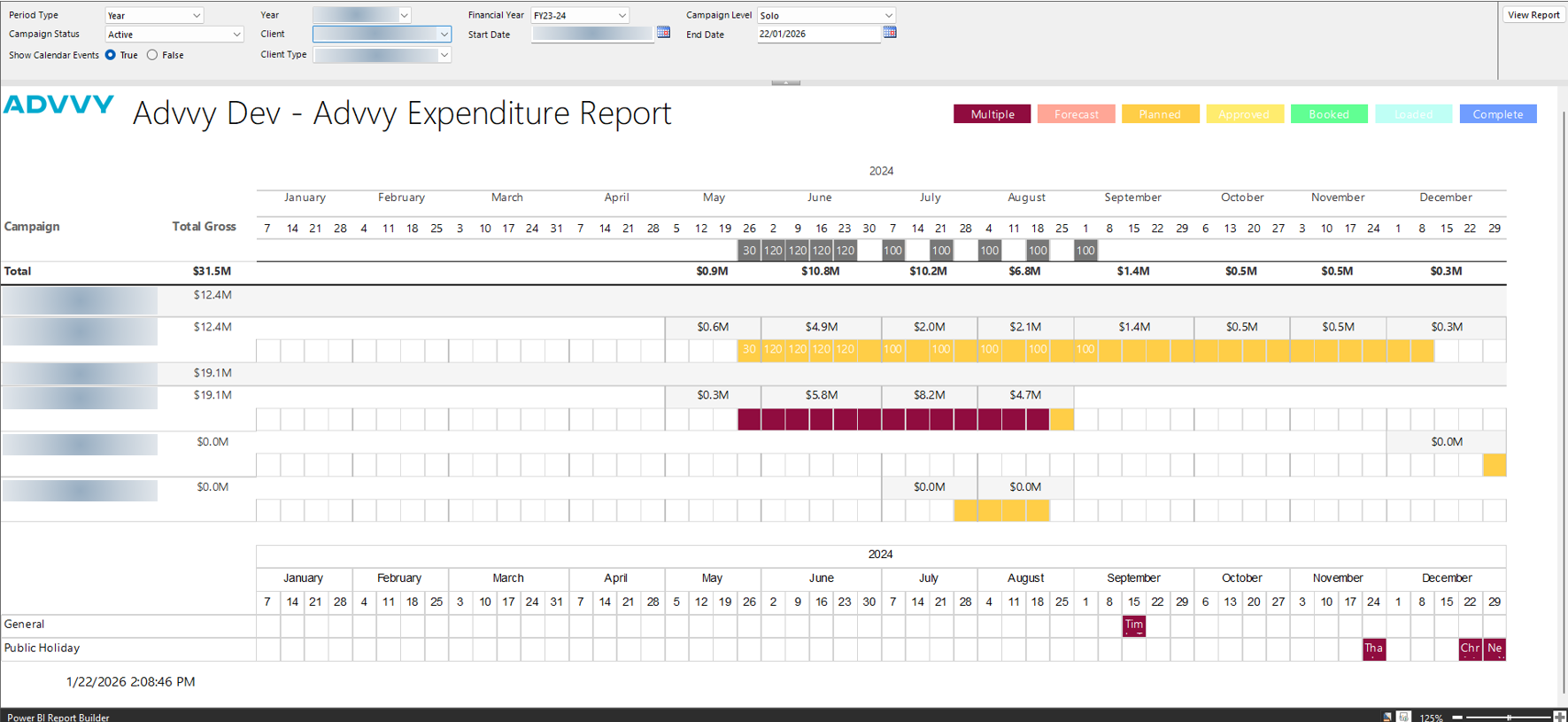 For clients requiring automated or scheduled reporting, Advvy supports a paginated Power BI version of the Expenditure Plan.