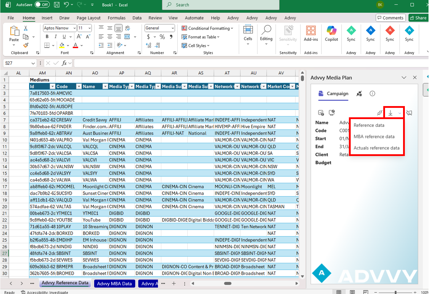 After it appears in Advvy, Reference Data must still be refreshed and loaded in Excel for it to become selectable in the media plan