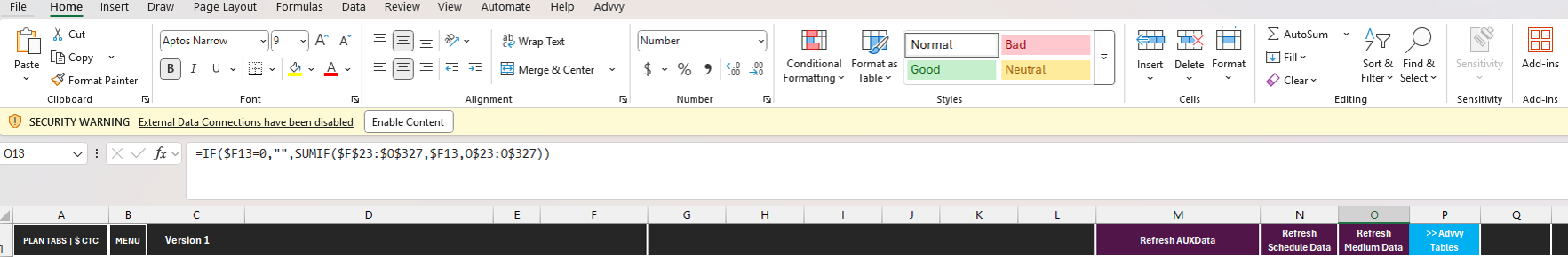 Open the Advvy Excel Add‑in